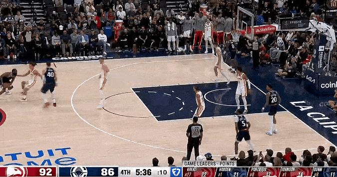 NBA常规赛,快船对阵老鹰的比赛正在进行中。