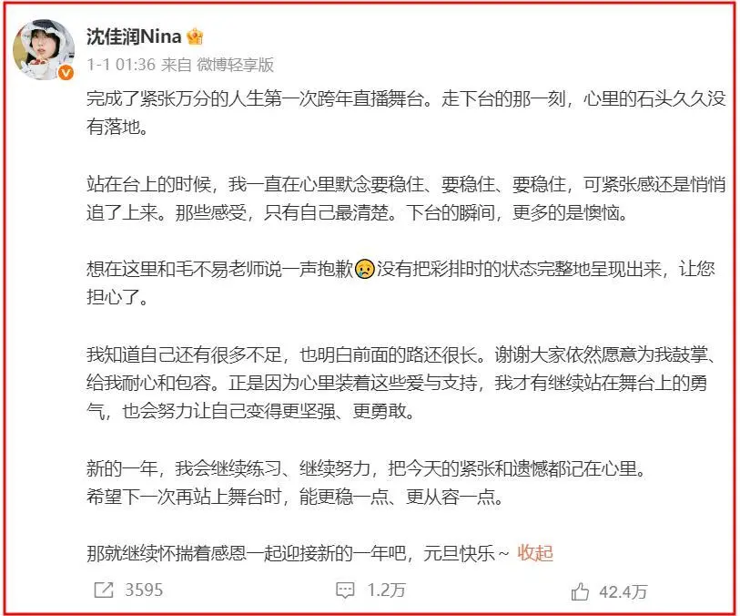 跨年晚会之后,沈佳润从公众视野里消失了整整一个月。
